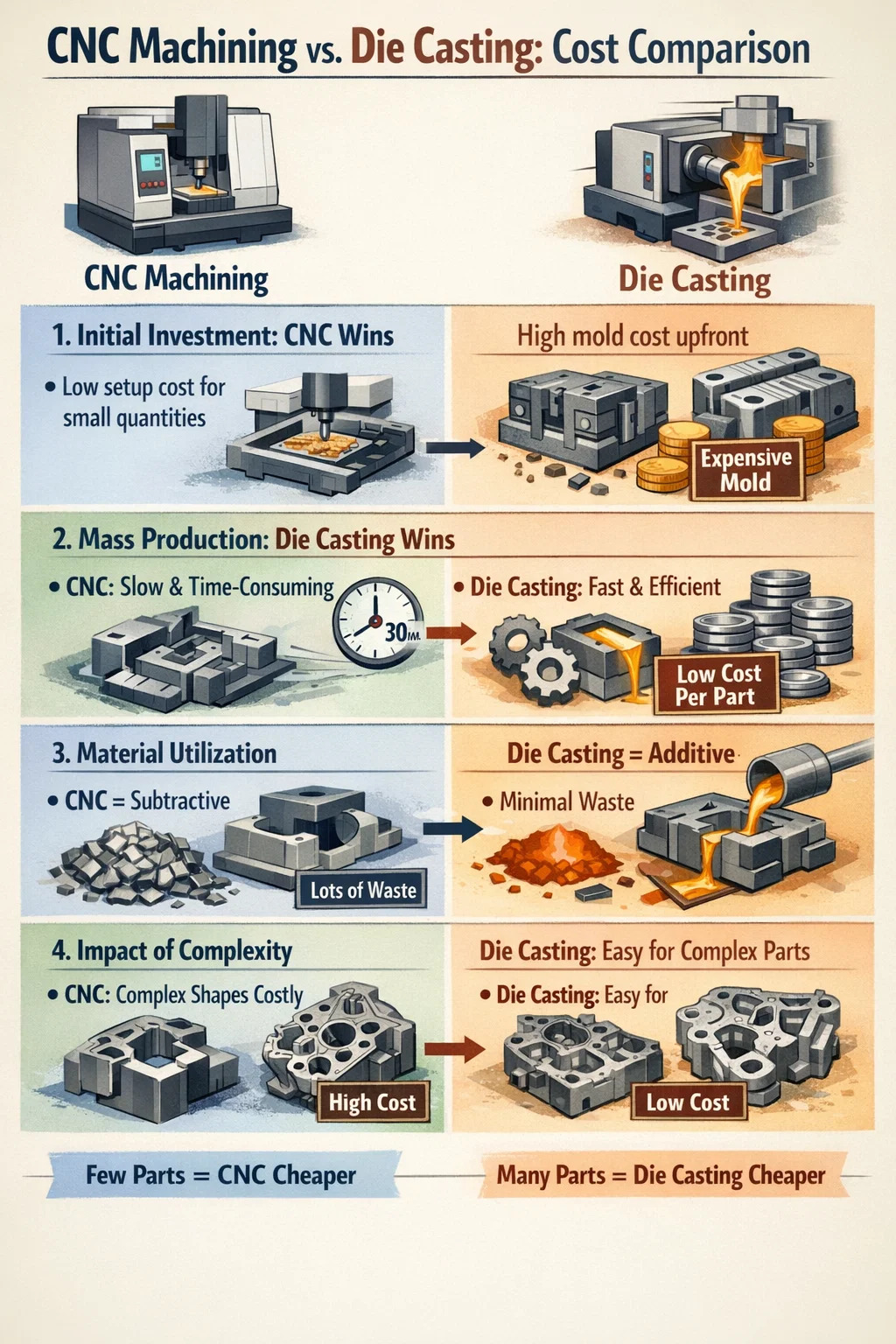 Med hensyn til om trykstøbning eller CNC-bearbejdning er billigere, afhænger svaret faktisk af, hvor mange dele du planlægger at producere.