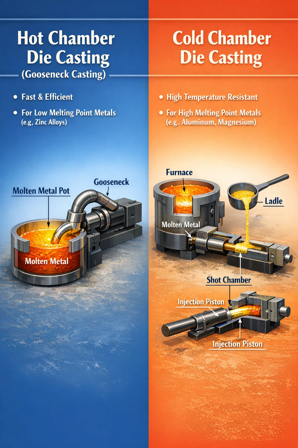 | Feature | Hot Chamber Die Casting | Cold Chamber Die Casting |