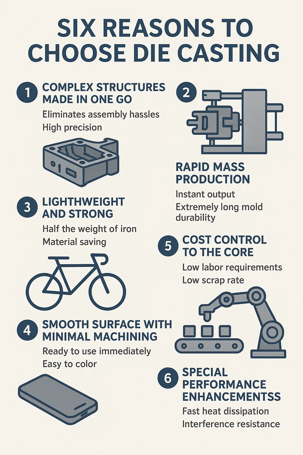 Halvvægten af jern: Aluminiumslegering trykstøbning (såsom cykelstel) er 50 % lettere end jerndele uden at gå på kompromis med styrken.